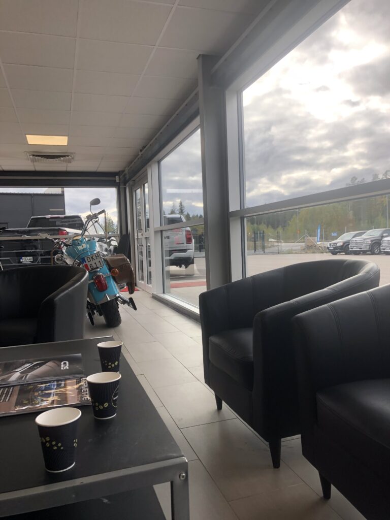 Jag hade tur och träffade genast Mattias som tidigare tagit hand om oss. Han höll med om att jag inte kunde köra bilen en meter längre och lovade undersöka bilen och komma med en offert snarast möjligt.