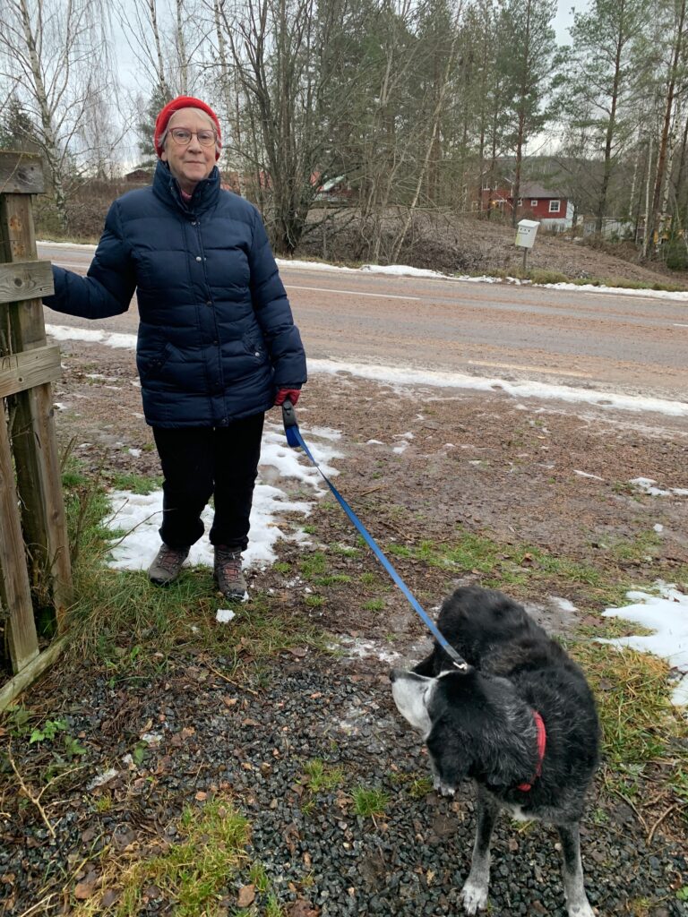 Vi tog en hundpromenad innan Ingrid körde tillbaka till Örebro igår. Snön hade nästan helt försvunnit.