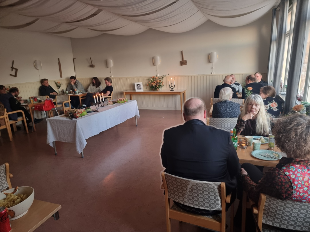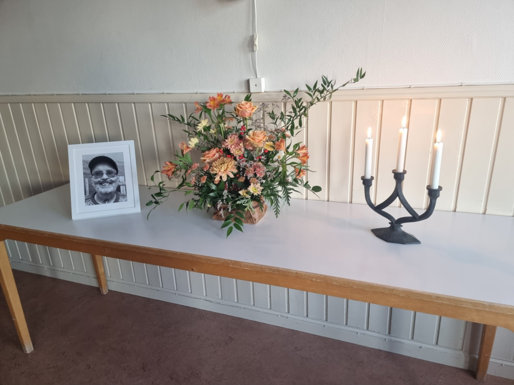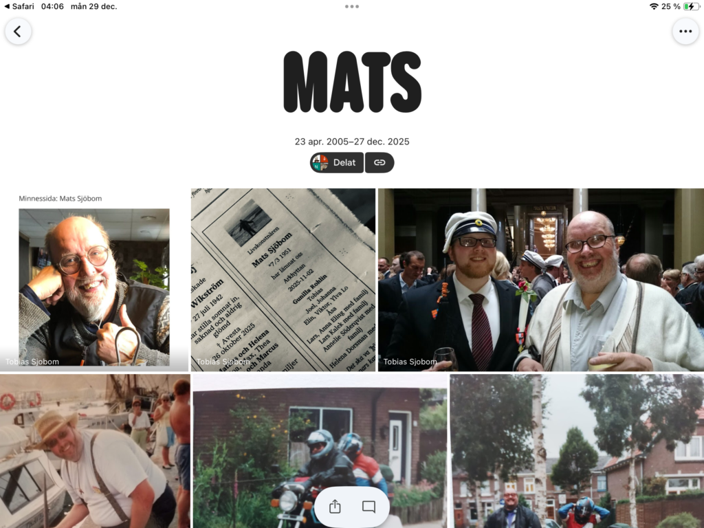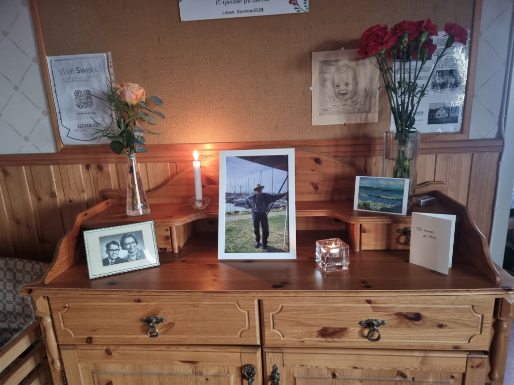 Tobias har gjort ett digitalt fotoalbum som stod och gick under minnesstunden.