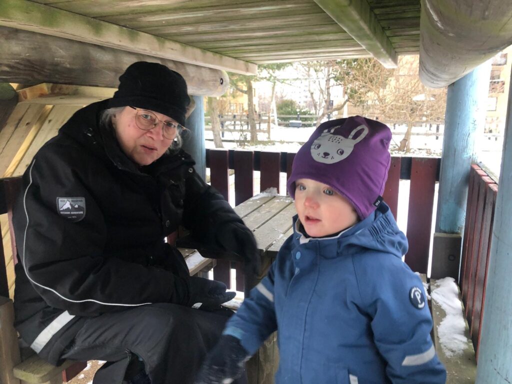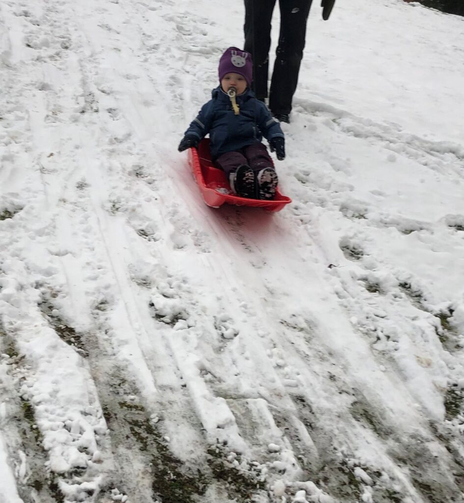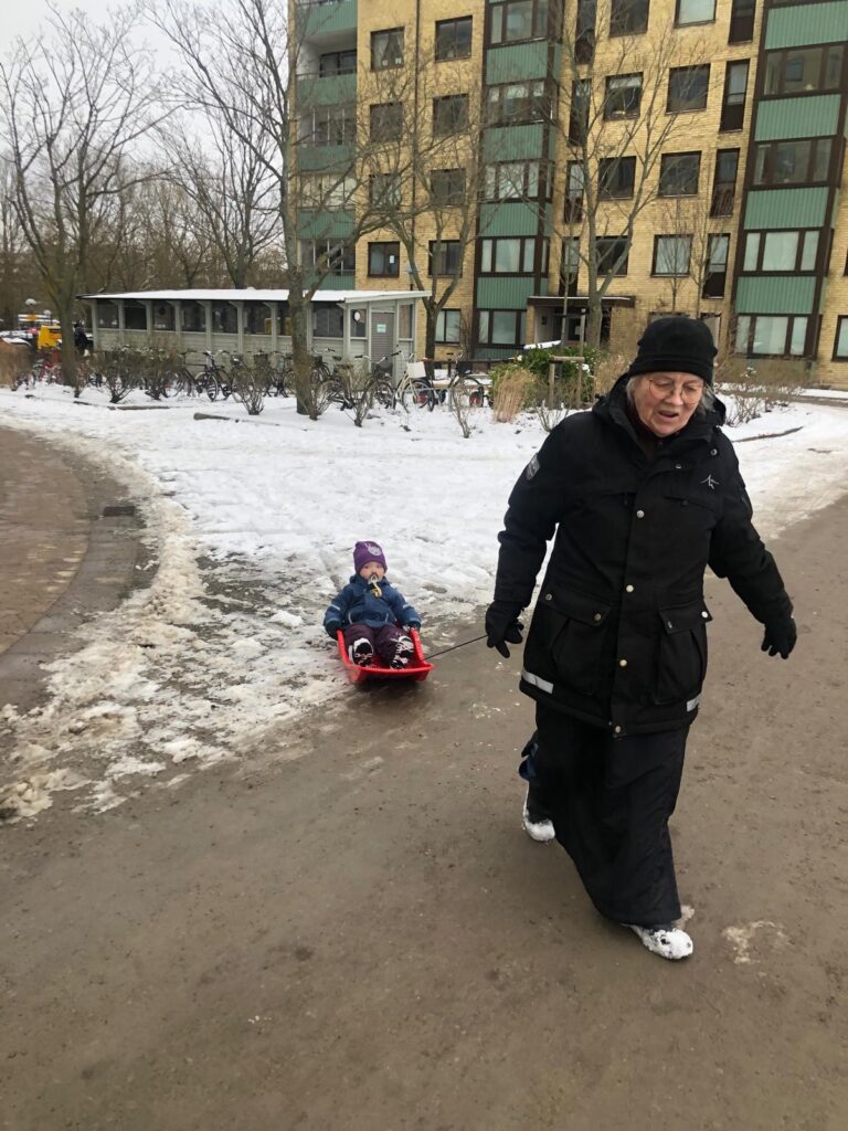 Elin och Ylva Lo kom hit mitt på dagen igår. Det är fantastiskt att det är så enkelt att träffas. De stannade en stund och vi avslutade med att gå ut och prova pulkan på min innergård.
