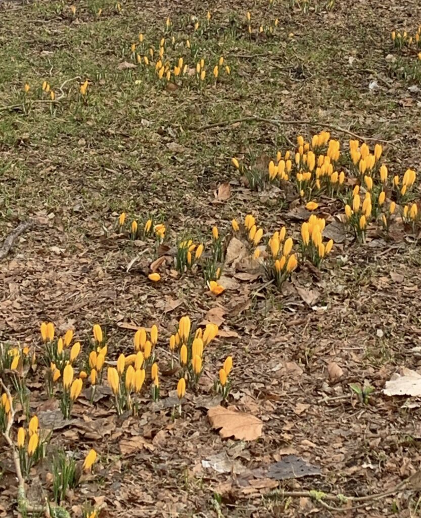 Jag fick en läkartid på vårdcentralen igår förmiddag. Dessa vårlökar hade tittat upp under natten och gladde mig under den korta promenaden dit.