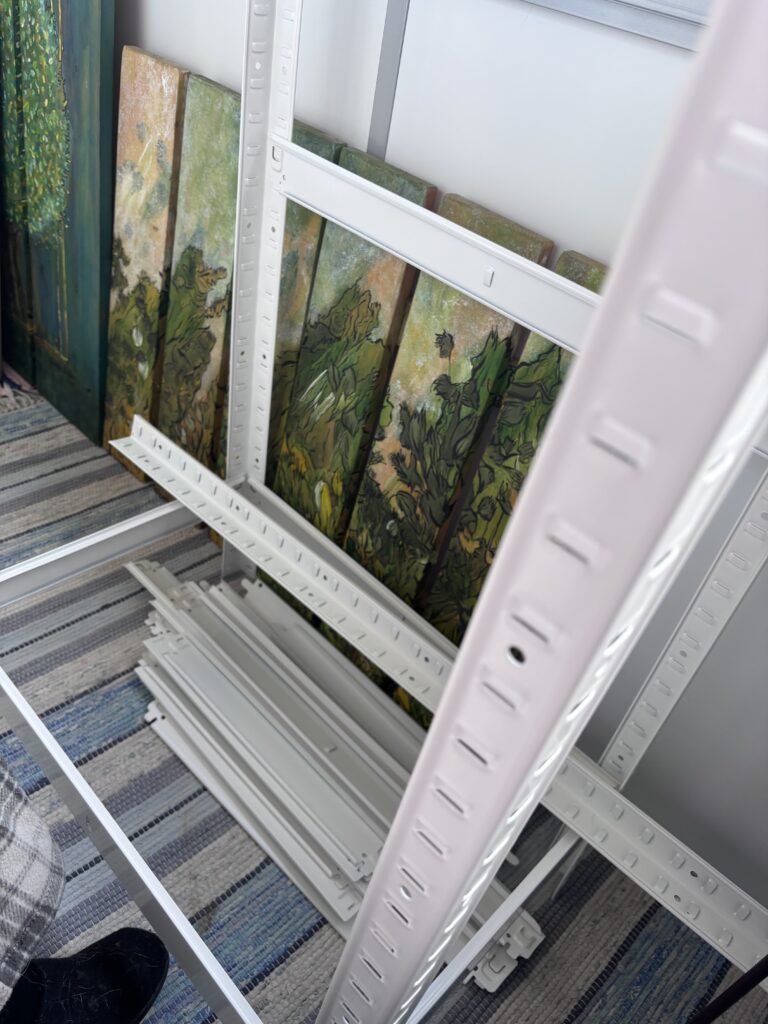Bianca är ”löpningsfjollig” vilket lätt går mig på nerverna men igår kunde jag hålla det ifrån mig. Balkongen är numera bra tempererad för utevistelse och vi trängs med den ännu icke färdigmonterade hyllan. Aldrig mer ska jag köpa en metallhylla utan skruvar…