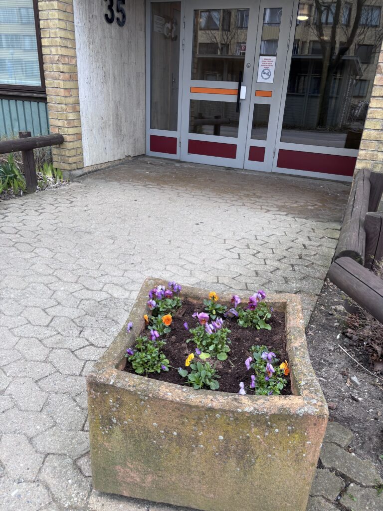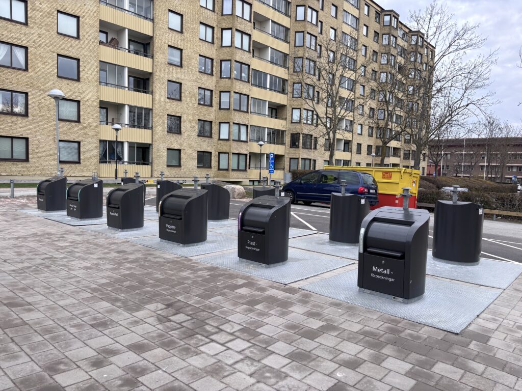 Precis utanför vår port finns det sopsortering med underjordiska containrar. Där finns också ett grovsorteringshus. Det fungerar bra tycker jag.