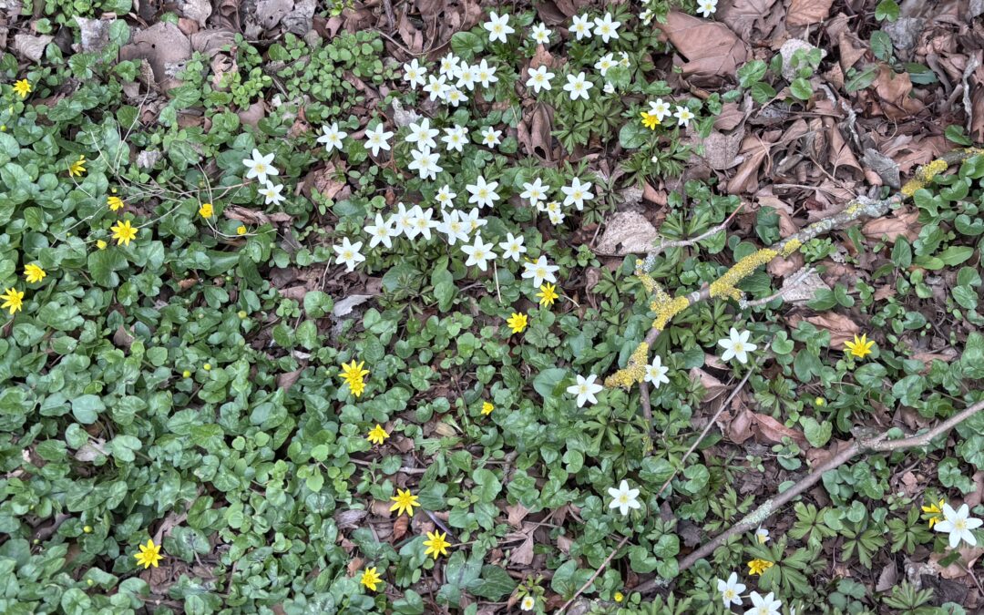 Växtligheteh spirar även precis utanför husknuten. Buskar och fruktträd blommar. Igår var det mulet och regnet hängde i luften men släppte loss först framåt kvällen.