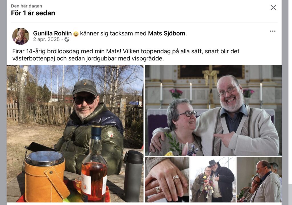 Tidigare i livet har jag själv tagit hand om mig i svåra livssituationer, det ändrades när jag träffade Mats, då var vi två som tog hand om varandra. Nu när jag är ensam igen så kommer jag att ta emot all hjälp jag kan få. Jag vill få ut så mycket som möjligt av min resterande livstid!