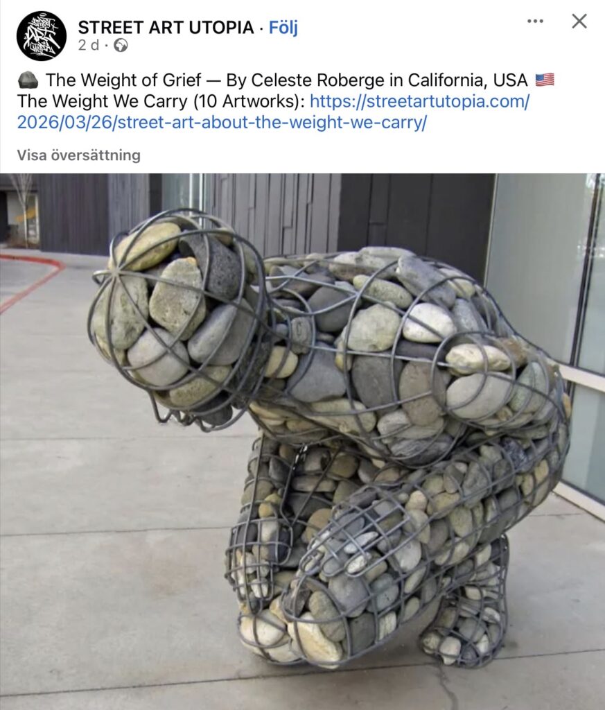 När jag såg denna skulptur av sorgens vikt började jag direkt att gråta. Det gestaltar den kroppsliga sorgen på ett fantastiskt sätt! Hur ska man någonsin kunna resa sig upp och gå upprätt igen?
