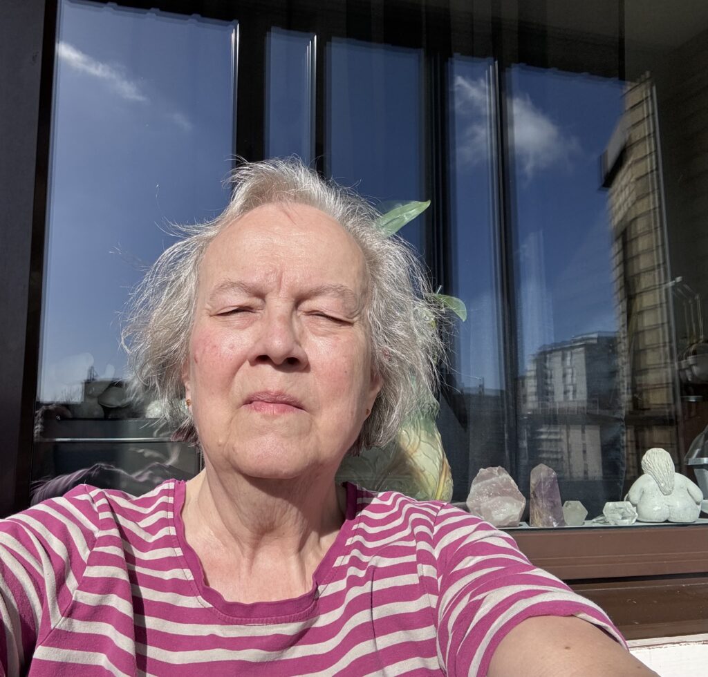 Igår strålade solen och temperaturen på balkongen steg så att inglasningen fick öppnas upp när Bianca och jag tog förmiddagsfika där ute. Min växthylla väntar på att komma upp och jag planerar för en grön balkong.