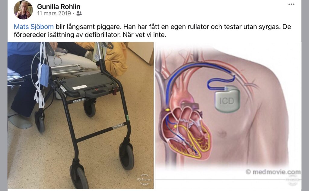 blir dagens ljugarbänk. Under alla år var ljugarbänken en helig plats för oss. Där mötte vi den första värmande vårsolen och njöt av ljumma sommarkvällar. Många fina stunder tillbringade vi där, ensamma eller med sällskap av barn, släkt och vänner. Under den sist sommren kom vi aldrig dit, Mats orkade inte. Bara det borde ha varit tydligt nog, men jag insåg ändå inte att det var vår sista sommar tillsammans. Men min kropp gjorde det, både med tarmvred och hjärtinfarkt !