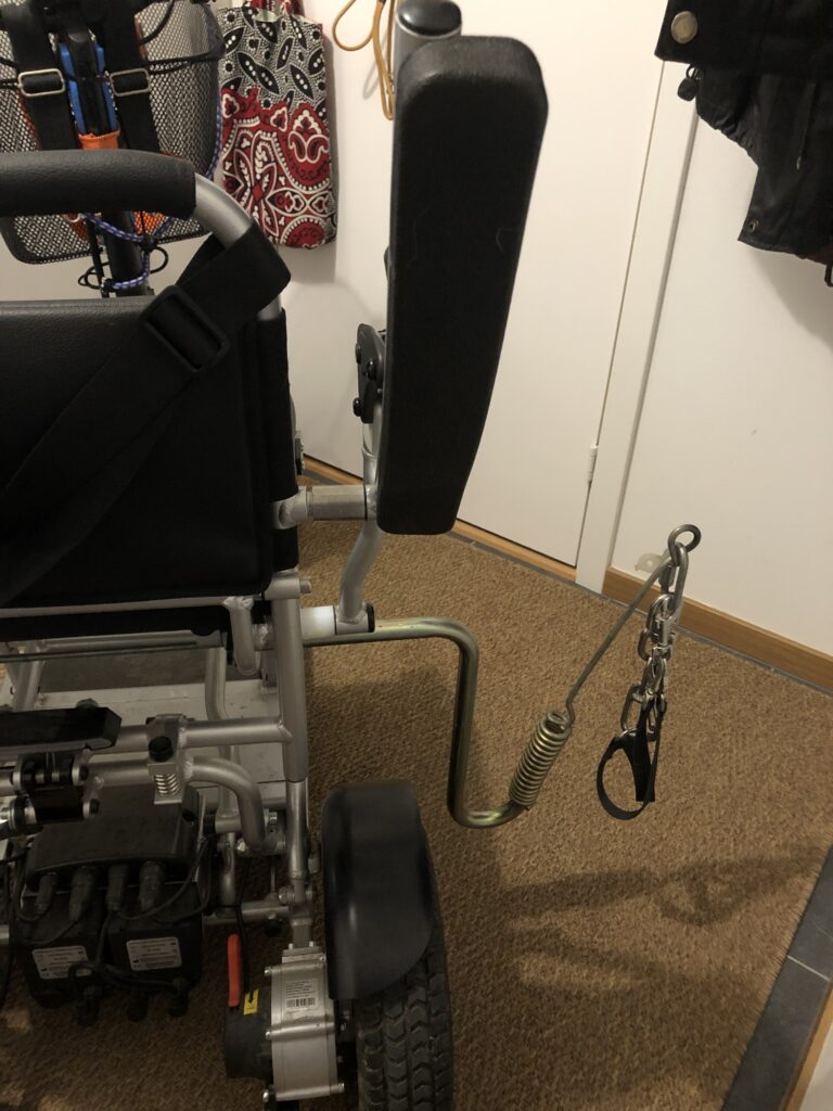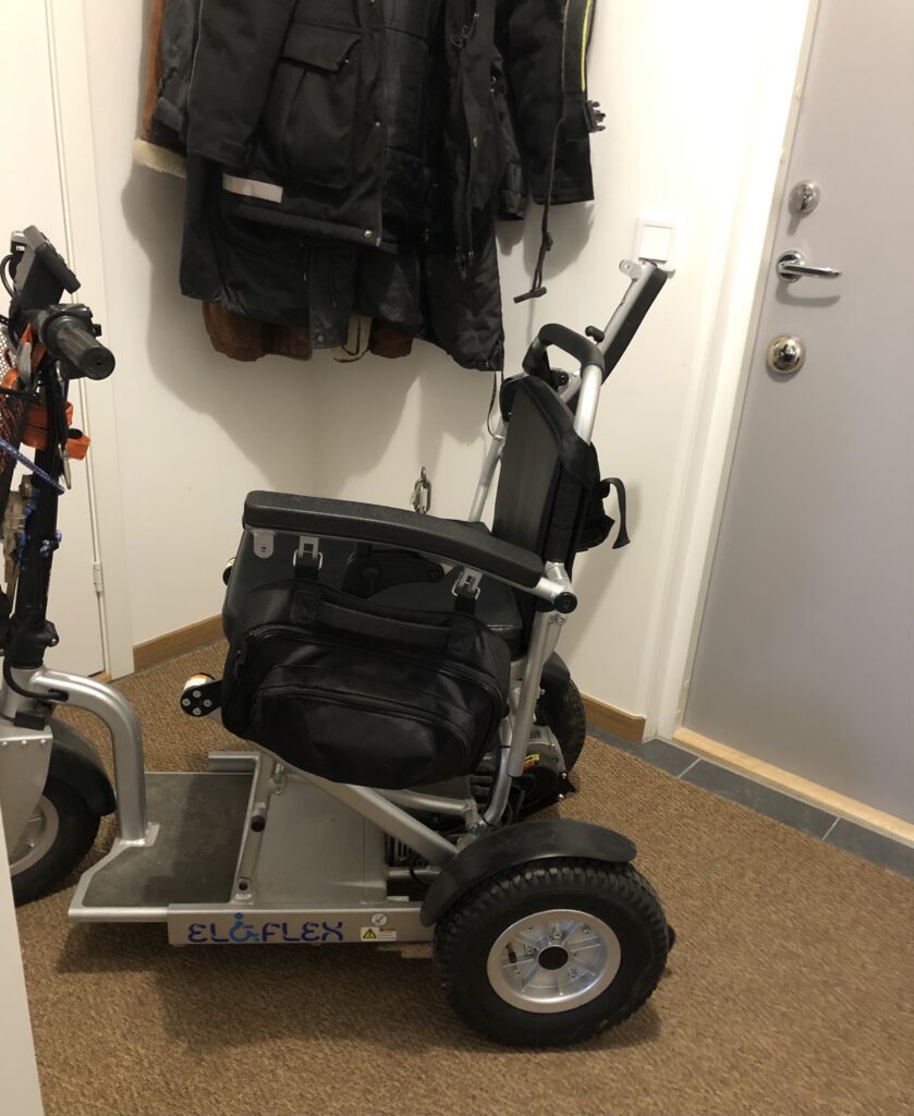 Scootern står på laddning i hallen. Det blir en utmaning för mig att testa hundrastningen med den. Men det behövs, Bianca behöver en längre rastning per dag och det har varit lite si och så med det hittills. Jag funderar också på hur koppelanordningen ska monteras, bågen uppåt eller nedåt? Jag har inte behövt tänka på sådant på så länge att det är tomt i huvudet. Jag undrar också om jag med min borr törs borra för tavelupphängning. De tavelkrokar jag har tar max 3 kg. Det är ytterligare en anledning till att jag saknar Mats! Och numera också Lasse!